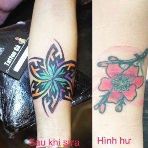 Sửa hình xăm ở bắp tay cho nữ bằng hình họa tiết.