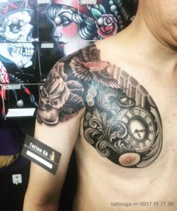 Hình xăm đồng hồ la mã ở tay cho nam