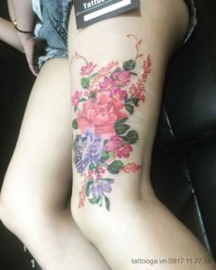 Hình xăm hoa cực đẹp ở bắp đùi cho bạn gái